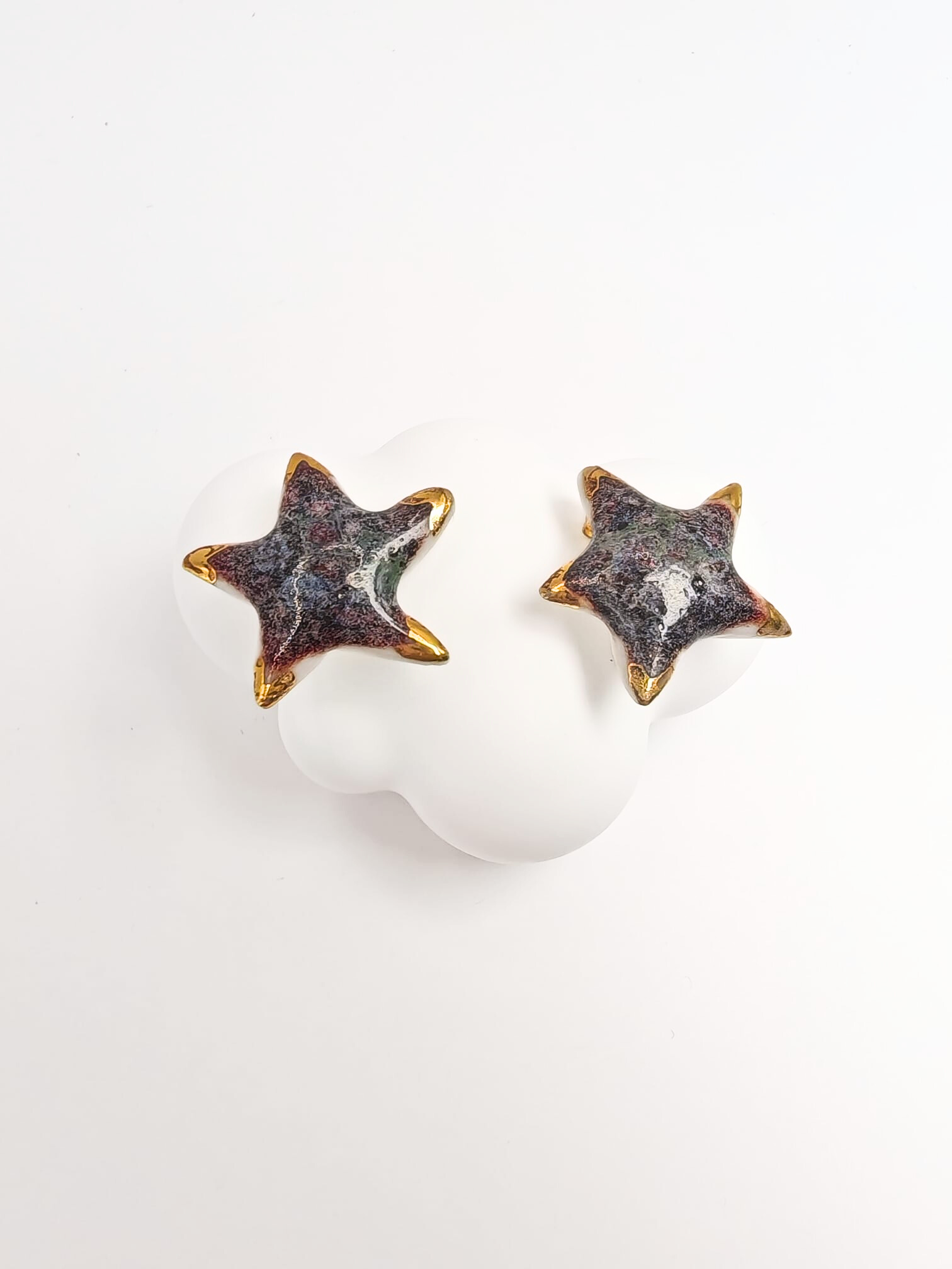Cercei Stelute Dodoloate din portelan, realizati manual, decorati cu aur 10%.